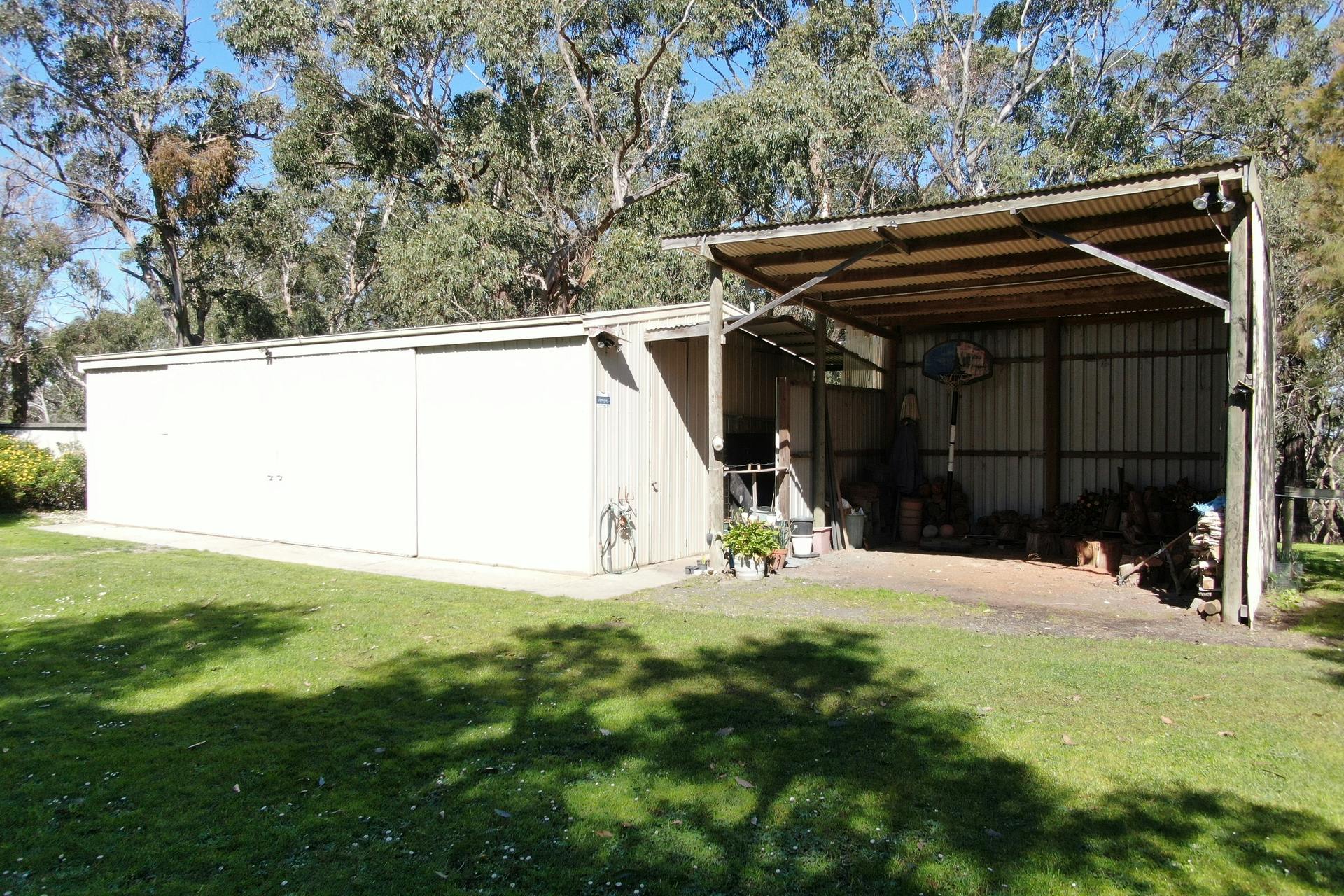 - Main machinery shed (13m x 7m) with concrete floor, power, toilet and wash basin