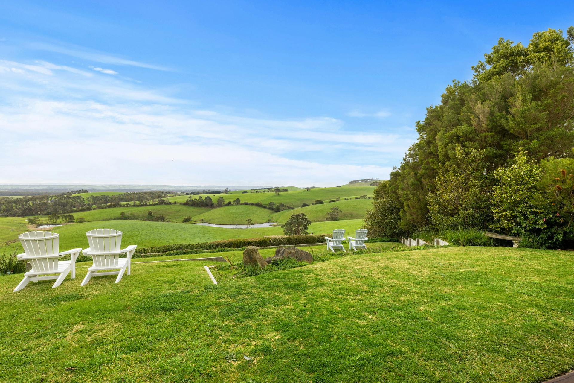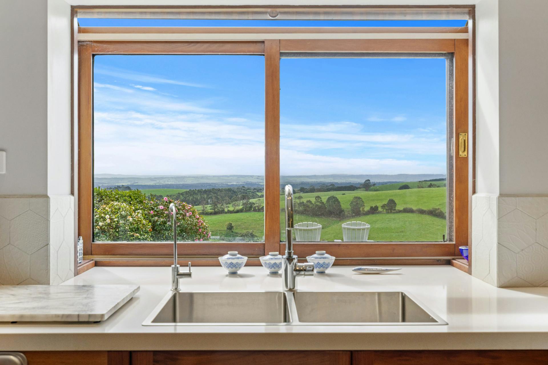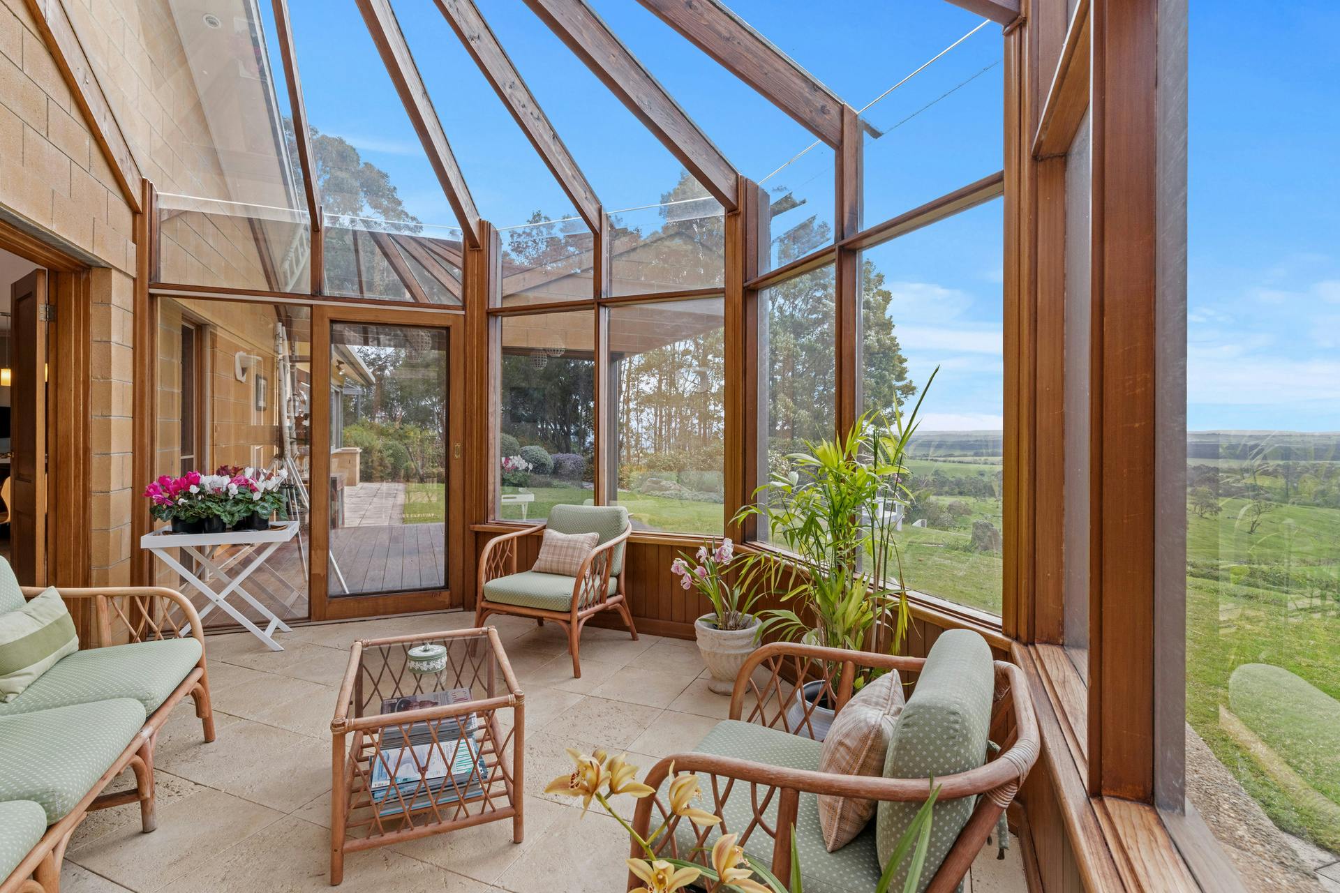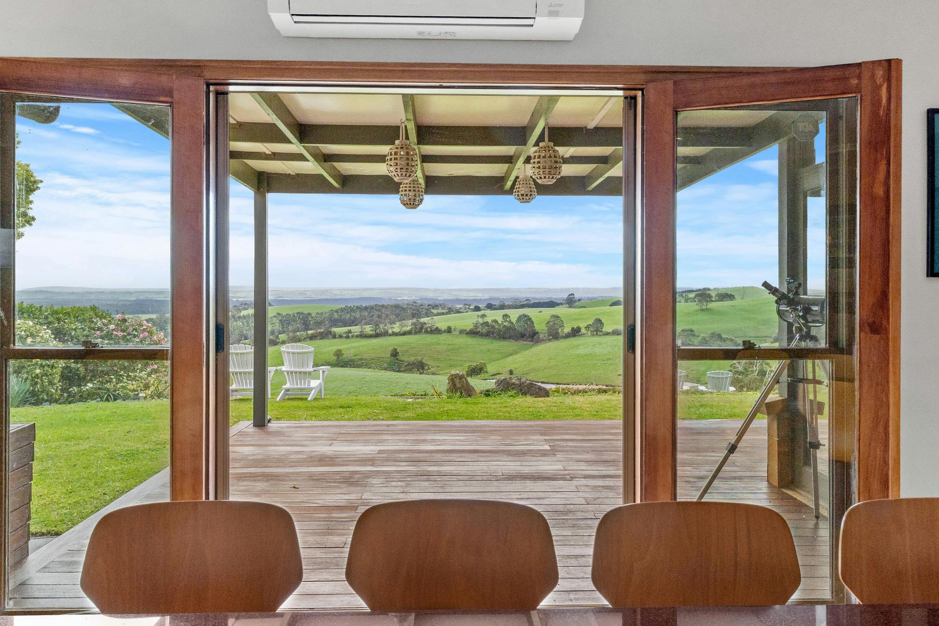 - Central living and dining area with breathtaking rural views