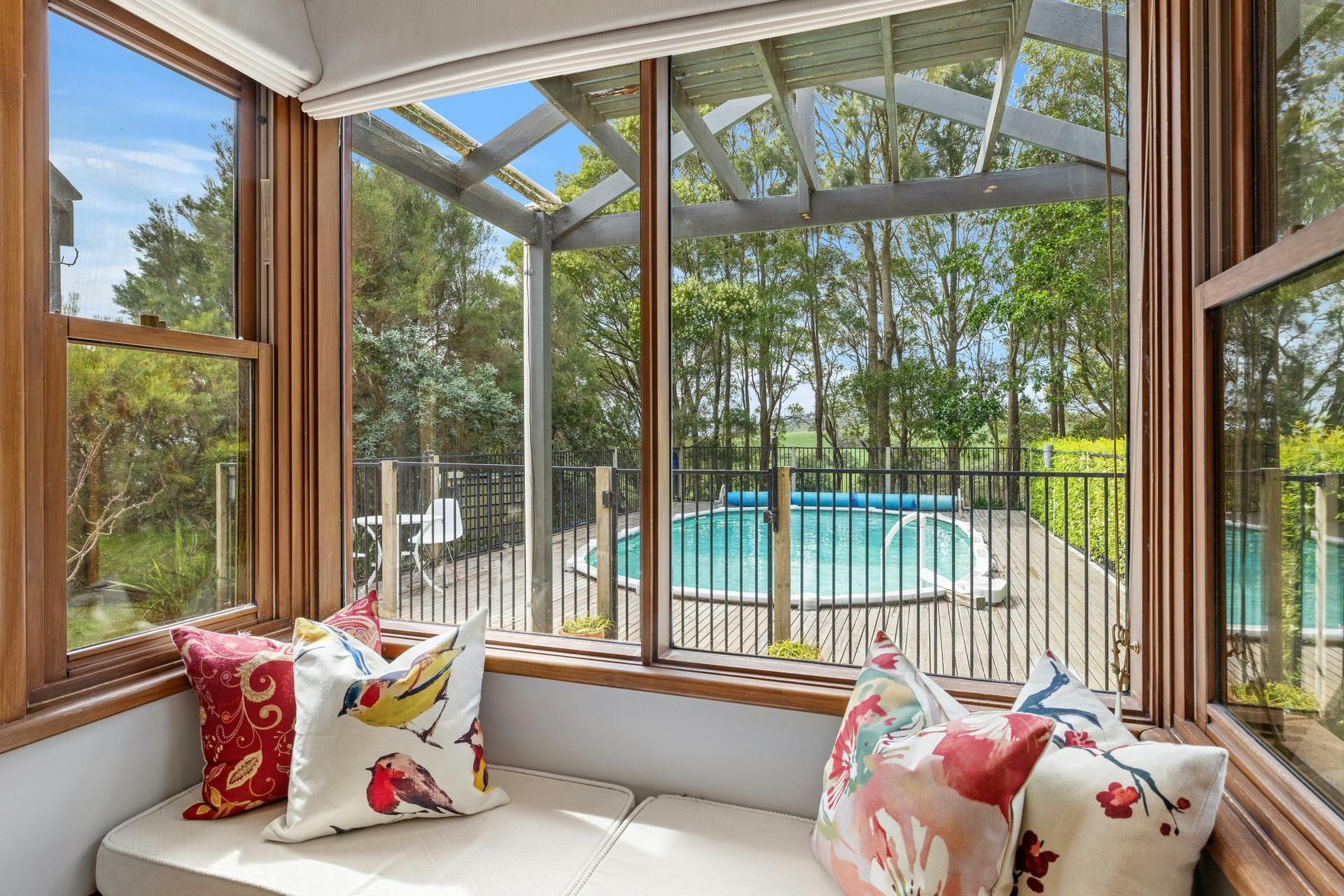 The home is impeccably presented, comprising a central core and two separate accommodation wings, with quality finishes, four bedrooms with their own bathrooms, a large study, a sunlit glass conservatory and a salt-water swimming pool.